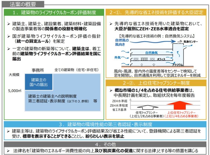 建築物省エネ法改正の閣議決定 ライフサイクルカーボン新着!!