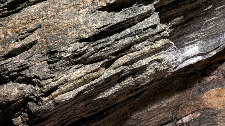 岩肌はきらきらと鉱石の跡が見て取れます。