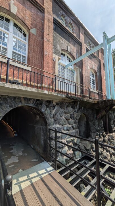 川側の地下から1台だけ残った発電機の中を見ることができます。