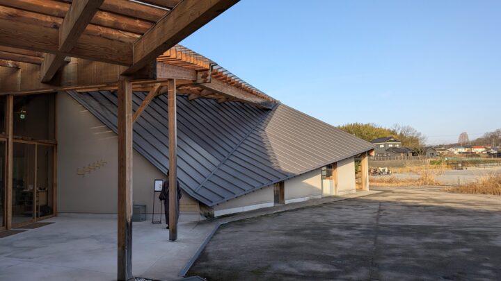 車で近づくと、低く抑えられた異質な外観が目に入る。