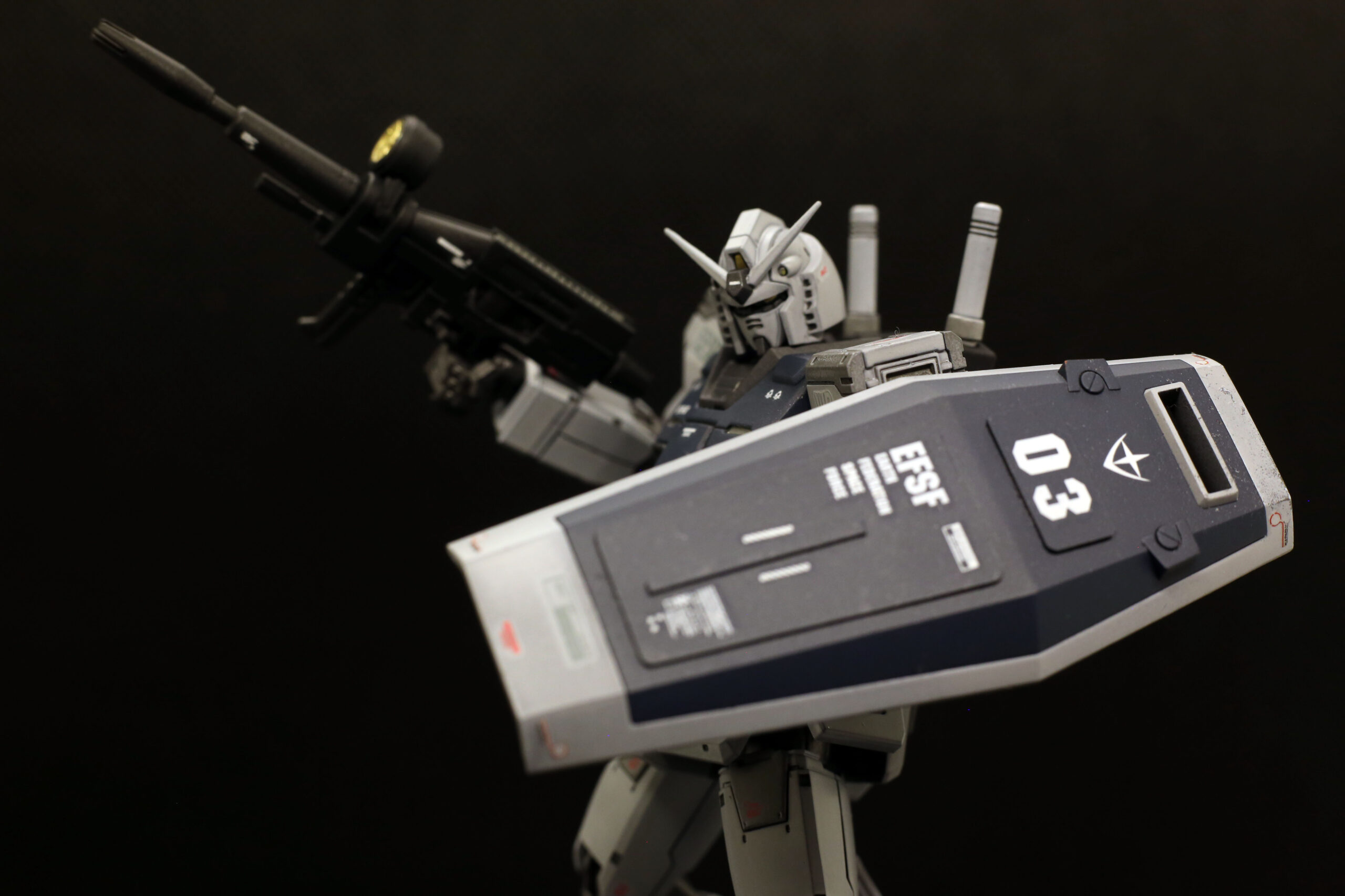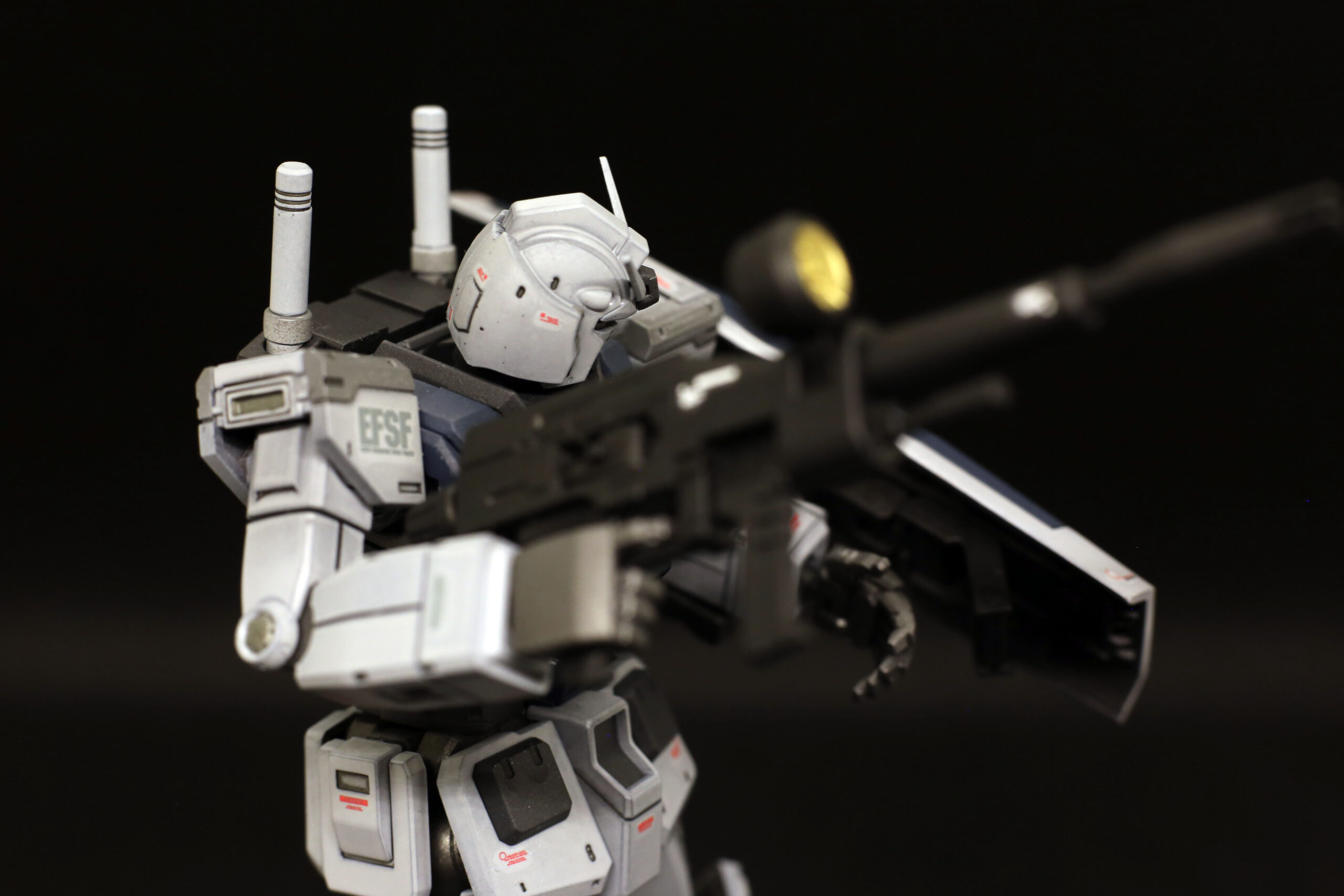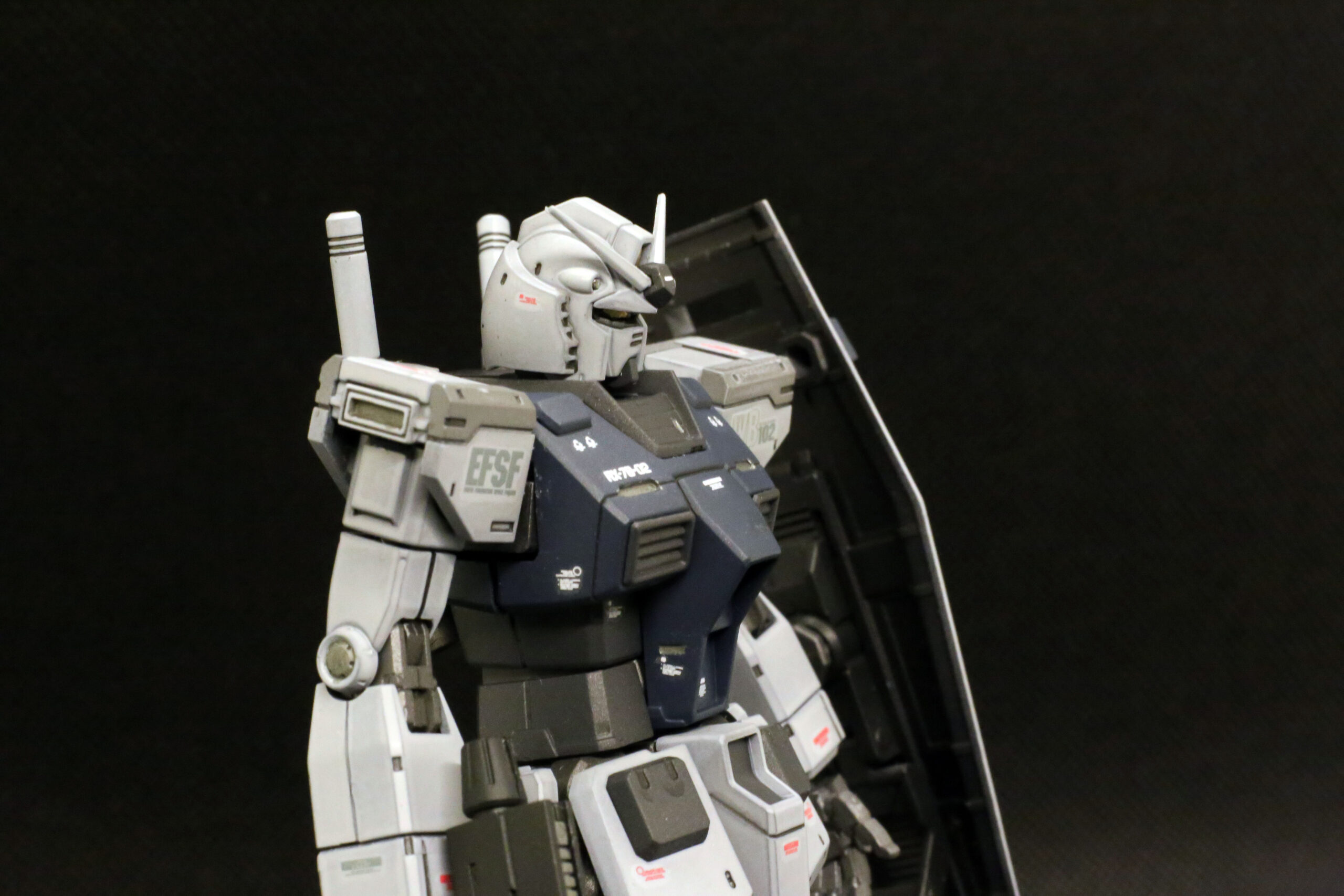 小説版の作中では、アムロが以前の2号機(トリコロールカラー)を振り返り、「まるでチンドン屋でおもちゃのようだった」と評する場面があります。それに対し、このG-3のグレーのロービジ(低視認性)塗装については、「実用的な兵器という感じがして頼もしい」と非常に高く評価しています。