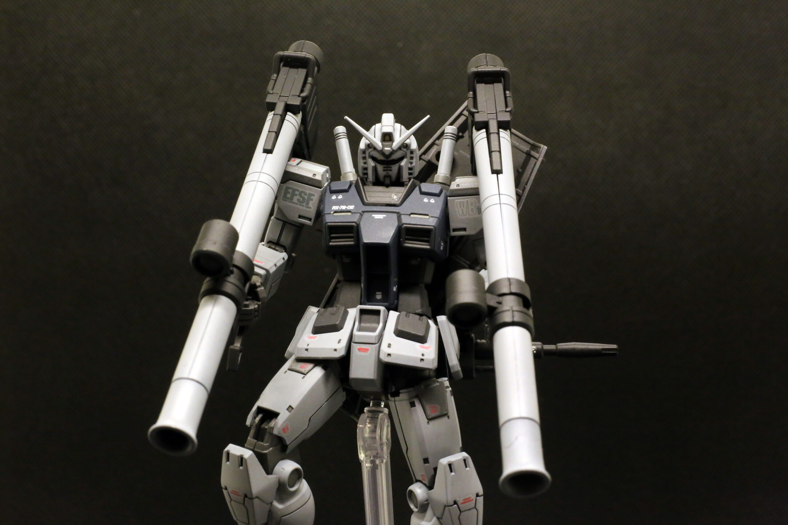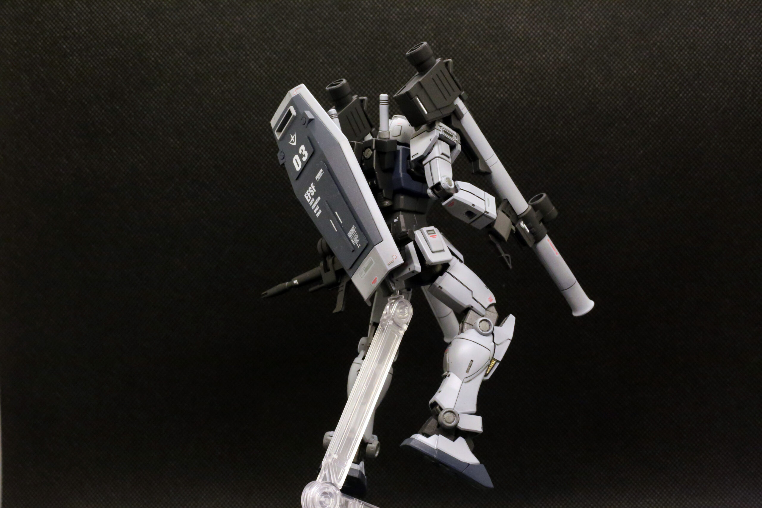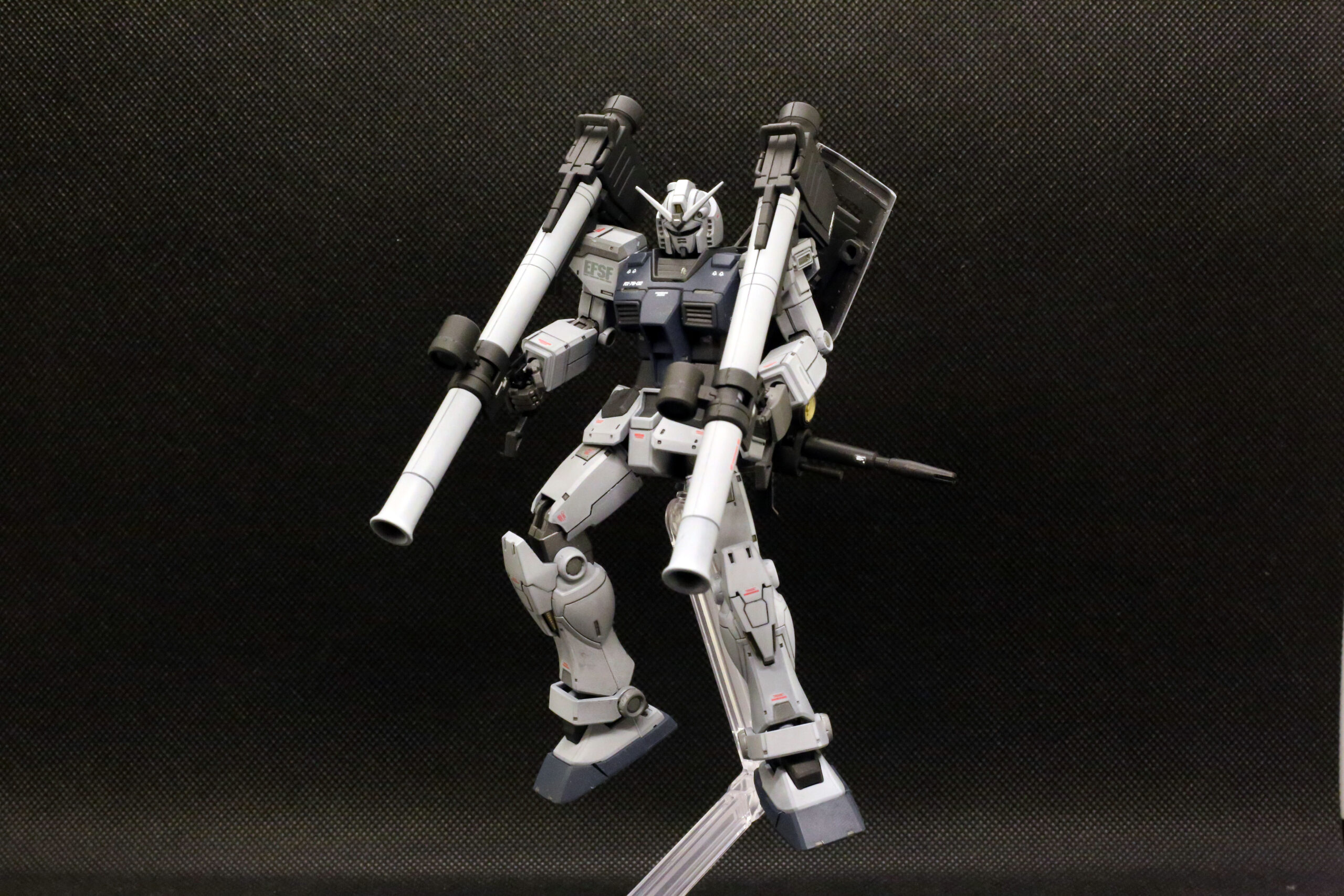 小説版の作中では、アムロが以前の2号機(トリコロールカラー)を振り返り、「まるでチンドン屋でおもちゃのようだった」と評する場面があります。それに対し、このG-3のグレーのロービジ(低視認性)塗装については、「実用的な兵器という感じがして頼もしい」と非常に高く評価しています。