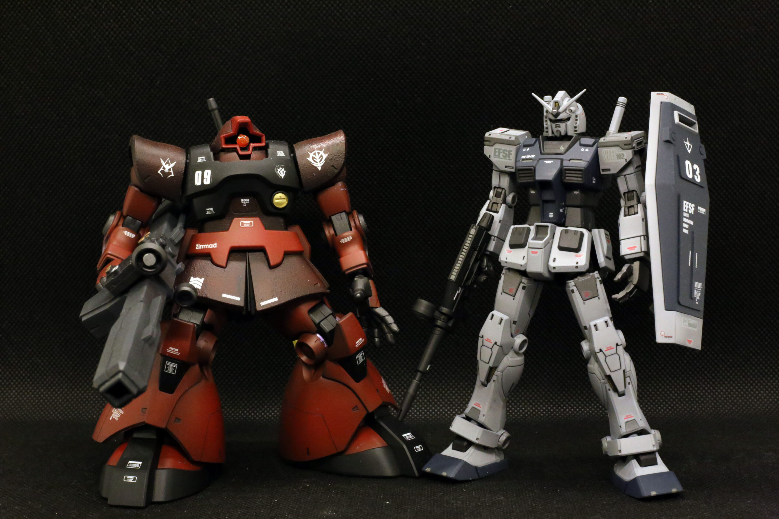 グレーのガンダムと赤いドム。アニメとは異なる、小説版ならではの「渋い」関係性を反映した2機を並べると、戦場の緊張感がより一層引き立つ気がします。