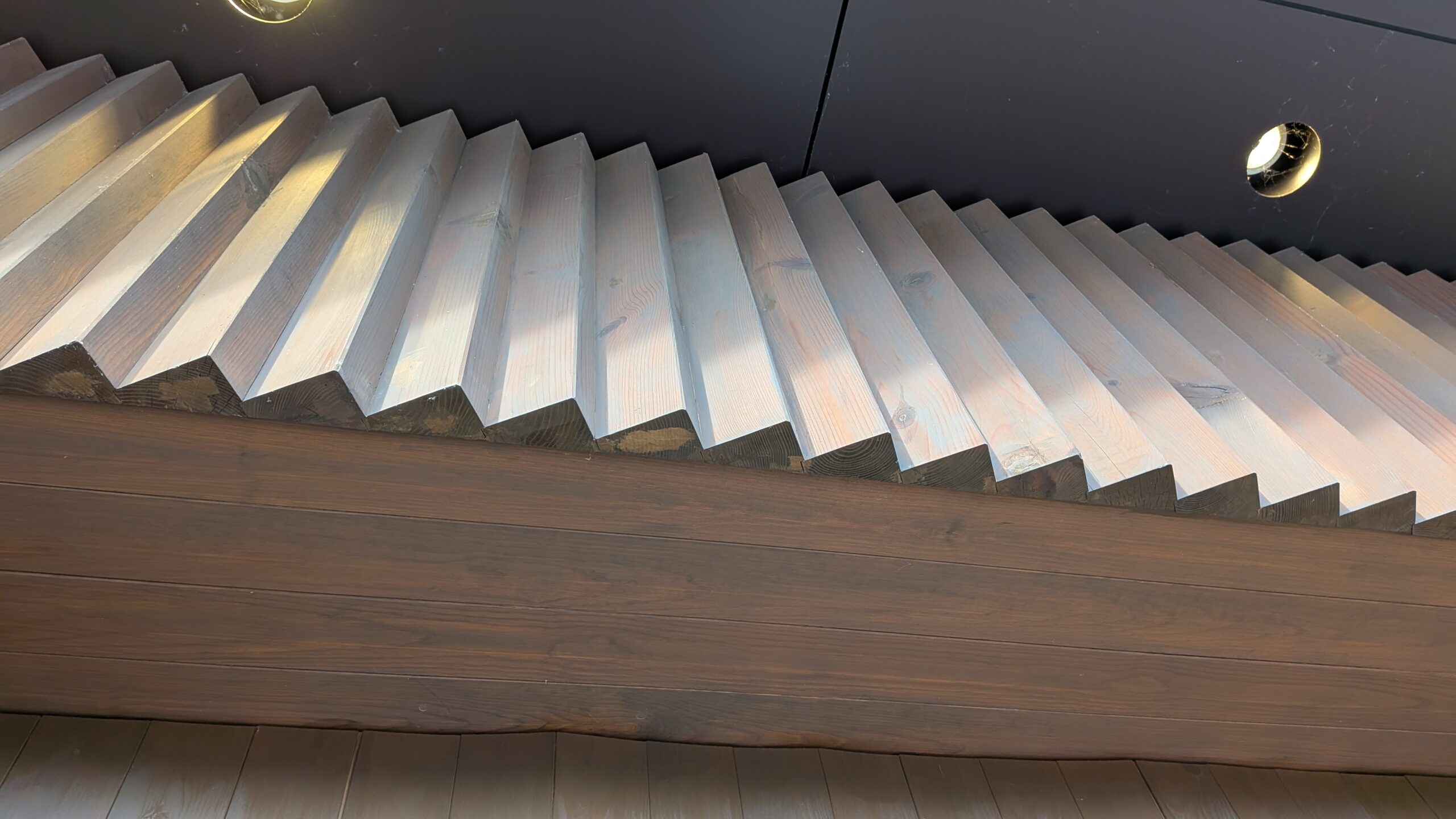 — 角ログが刻むリズムと、屋上からの富士山が迎える旅の入口 —