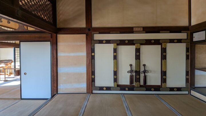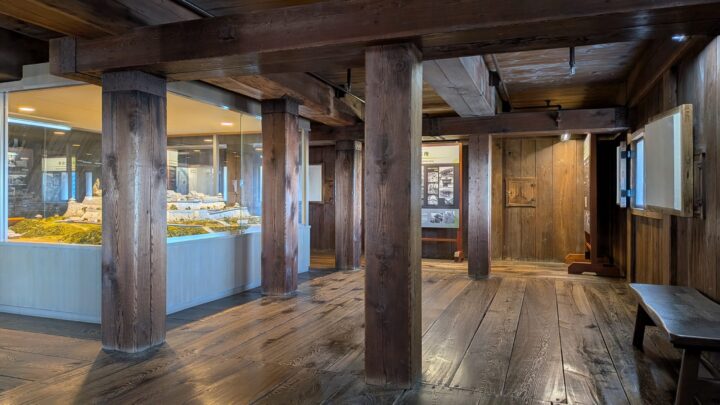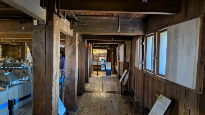 内部は、城らしく、骨太の木材でくみ上げられています。