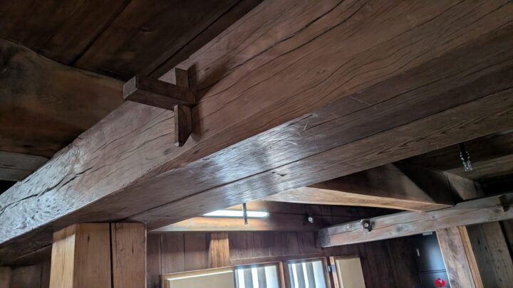 一部、木栓で接続された張りも見られます。再建時に巨木が手に入らなかったための工夫でしょうか。