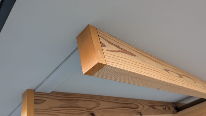 特に梁と重なるところは違和感が強い。鼻隠し板で通した方がよかったのでは。
