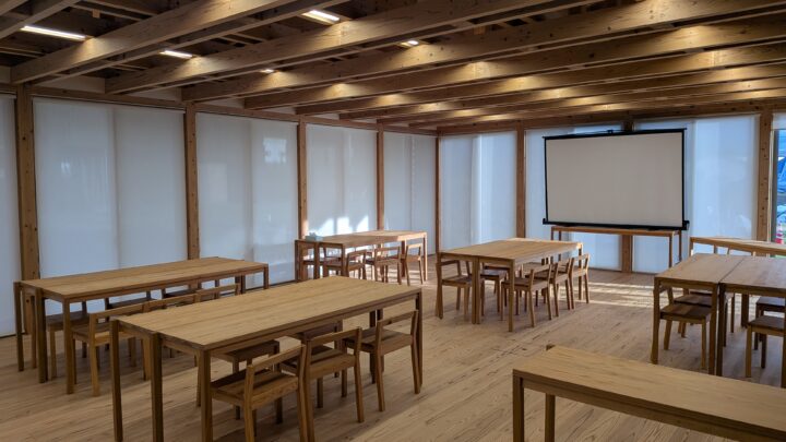 伝統的な木組構法を活かしつつ、現代的な断熱・耐震性能を備えた構法は、住宅にも応用可能な技術のショーケースとなっている。