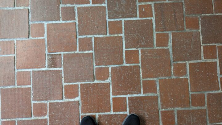 床タイルレンガも間取りと同様に正方形を組み合わせた敷き方。