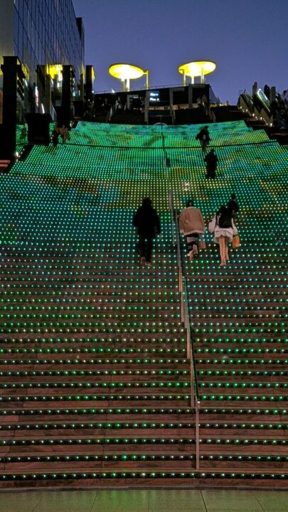 紅葉や建物のライトアップが水面に映り込み、京都タワーとの共演も楽しめました。