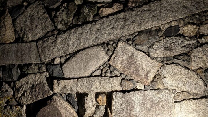 さまざまな大きさや形状の独特の石垣迎えてくれます。