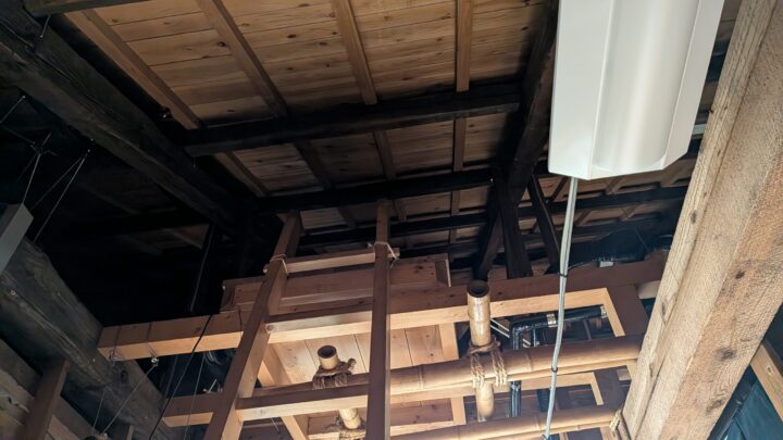 舞台裏も入ることができ、小屋組みを見ることが可能です。